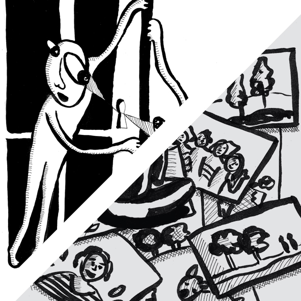 Creation: Paris / 2015 Photos: Coline Robin Infos:http://association-sonar.org/creations/6-le-reseau-social/ The French collective Sonar is active in the field of theatre and art installation/exhibition. For their exhibition « Le Réseau Social », I realised illustrations of the art projects for a catalogue.The illustrations capture the spirit of the twelve artworks.